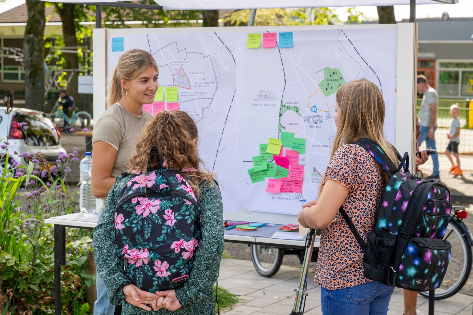 Geen dikke rapporten die in een la verdwijnen, maar overgaan tot actie. We testen ideeën in pilots of interventies. Zo zien we samen met betrokkenen wat werkt, leren we onderweg en houden we het tempo hoog. Bijvoorbeeld: bewoners droomden van een sport- en ontmoetingsplek in hun park. Samen maakten we die droom tijdelijk zichtbaar – en kregen we waardevolle inzichten om er structureel mee verder te gaan. Of we testen het concept 'wijkterras' om bewoners van verschillende achtergronden met elkaar in contact te brengen.